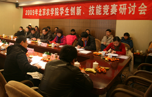 为进一步落实学校本科教学质量与教学改革工程,完善学生科技竞赛体系,促进学生成长成才,1月9日上午,基础教学部、校团委联合举办了2009年北京农学院学生创新、技能竞赛研讨会,并对《北京农学院大学生科技竞赛活动管理办法》(征求意见稿)的内容进行了研讨和交流。校党委副书记高东、副校长杜晓林出席会议,校团委书记杨宝东主持研讨会。