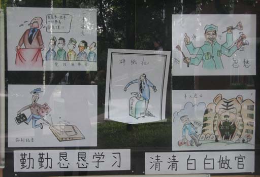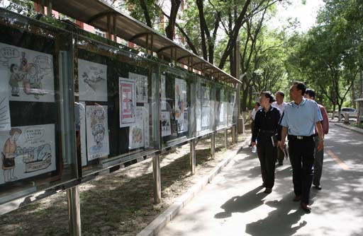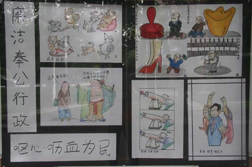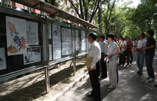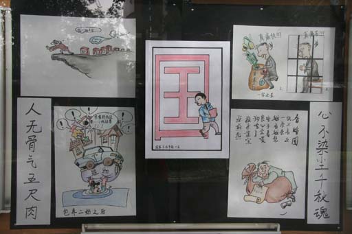 我校“反腐倡廉漫画展”开展这是党风廉政建设宣传教育月的活动内容之一。我校2008年党风廉政建设工作会议暨党风廉政建设宣传教育月活动启动仪式结束后,与会人员参观了漫画展。