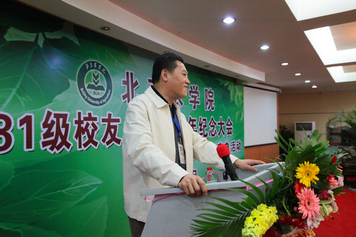 在校学生代表08级动物医学专业学生孟洪在发言中代表所有在校生对回到母校的81级校友表示热烈地欢迎,并表示一定以他们为榜样,珍惜在校学习的美好时光,刻苦努力,勤于实践,奋发向上,用自己的实际行动回报母校。