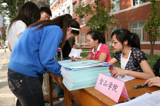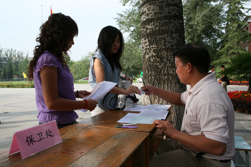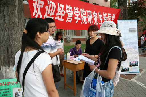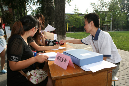 金秋送爽,彩旗飘扬。 9月8日,我校迎来了2010级170多名研究生新生。植物科学技术学院、动物科学技术学院、经济管理学院、园林学院、食品科学学院及相关职能部门在行政楼前为新生们办理入学手续。