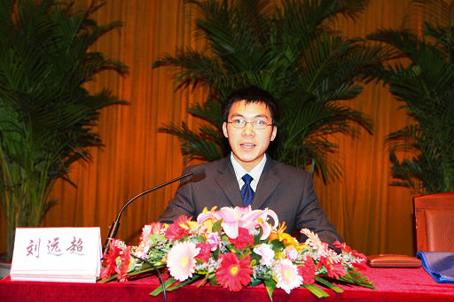 宣讲会上,延庆县2006届优秀大学生“村官”刘远超宣讲《酸甜成长路 难舍故乡情》