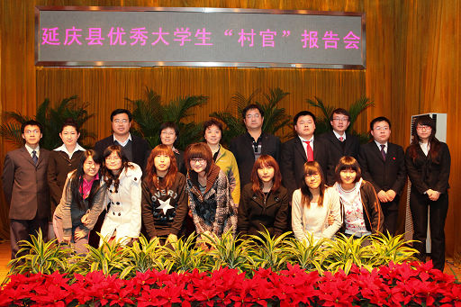 会上,延庆县人力资源与社会保障局负责人介绍了延庆县大学生“村官”工作的相关工作,指出自2005年12月以来,延庆县共选拔了5批979名高校毕业生到农村任职,全县广大大学生“村官”积极投身新农村建设第一线,扎根基层,转变角色,勤学善思,大胆实践,服务“三农”,争先创优,赢得了群众的广泛认可,树立了自身良好形象,涌现出了武卉、王贺等一批充满激情、求实创新的先进个人,他们用自己的实际行动展示了大学生“村官”的时代风采。