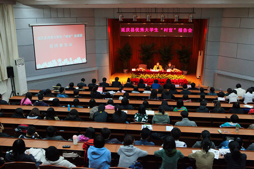 4月27日晚6点,延庆县优秀大学生“村官”宣讲团在我校报告厅举行报告会。延庆县人力资源和社会保障局副局长孟顺利、“村官”办主任杨娟和五位优秀大学生“村官”来到我校进行宣讲。党委副书记高东主持报告会。五位“村官”们跟到场的应届毕业生们分享了自己在任职期间的心得体会,让大家通过自己的亲身经历更加了解大学生“村官”在农村的生活,并且告诉了广大毕业生:要做,就要做到最好。
