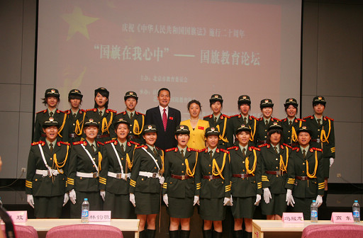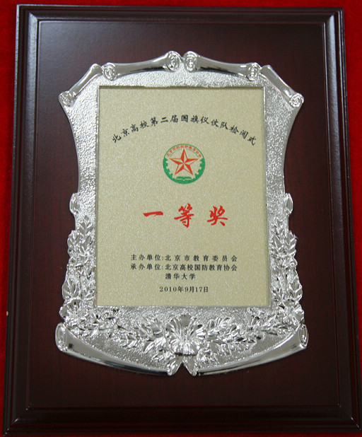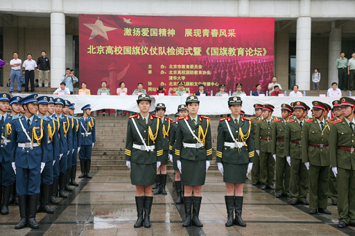 9月17日,为庆祝《中华人民共和国国旗法》施行二十周年,普及国旗知识,进一步规范学校升旗程序和升旗手的动作,由北京市教委主办、北京高校国防教育协会和清华大学承办的“北京高校第二届国旗仪仗队检阅式暨《国旗教育论坛》”在清华大学举行。我校女子国旗班在学校领导的亲切关怀下,在参赛的16支队伍中脱颖而出,和北京航空航天大学国旗仪仗队共同获得 北京高校第二届国旗仪仗队检阅式一等奖。教育部、全国人大、国教办、总参、市教委、高校国防教育协会及部分高校领导参加了检阅仪式和论坛,我校党委副书记、北京高校国防教育协会副理事长高东出席了检阅式和论坛。