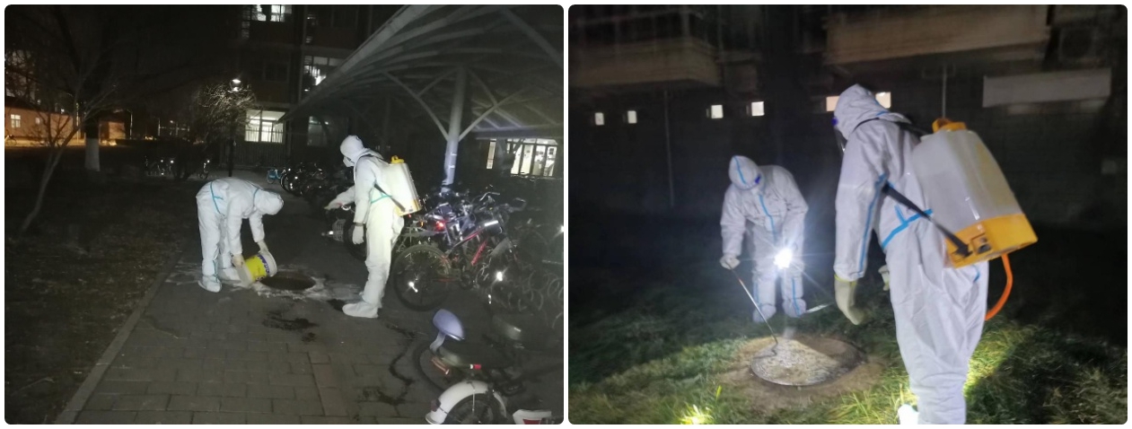 随着疫情的出现,化粪池消杀刻不容缓。动力保障服务中心每晚对16个化粪池进行专业消杀,遏制病毒蔓延。