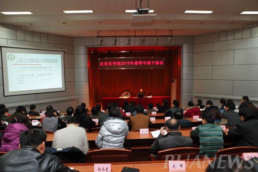 2月26日上午,2010年春季中层干部会在报告厅举行。全面总结我校2009年工作,对2010年的工作进行全面部署。党委书记王慧敏主持会议并做了重要讲话。校长王有年做工作报告。校领导和全体中层干部出席会议。