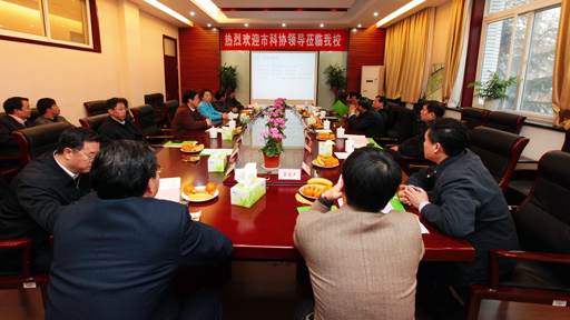 3月17日,市科协党组书记、常务副主席夏强,副主席景晓东、周立军、田文等一行8人来我校调研。校长王有年热情接待来宾,并向客人介绍了学校发展建设情况、“十二五”发展思路及学校科协工作。