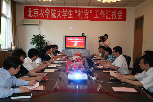 调研组组长杨纲在听取了汇报后指出,北京农学院对大学生“村官”工作定位准确、思路清晰、措施得力、效果显著。找准了学校的定位,独辟蹊径的开创了一条大学生“村官”培养的新路。
