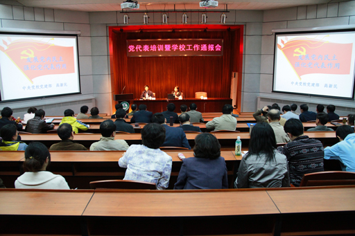 4月27日下午,我校召开了党代表培训暨学校工作通报会,会议由党委副书记高喜军主持。特邀中央党校高建民教授来校为党代表做了题为“发扬党内民主,强化党代表作用”的培训报告。党委书记王慧敏出席并向全体党代表通报了学校“十二五”规划的主要内容和精神实质。