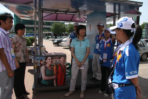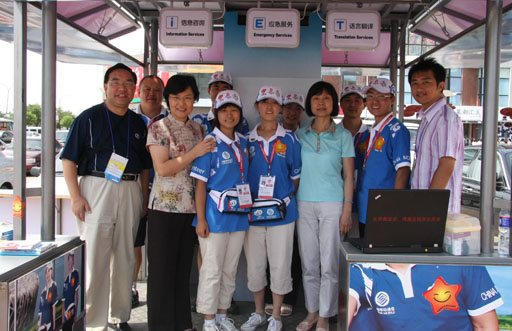 随后,学校领导赶到回龙观小区华联商厦慰问了我校回龙观小区城市志愿者。此时,园林系的龙泰宁同学作为信息咨询员、园林系的姜丽娟同学作为应急服务员、高职学院的刘倩同学作为语言翻译员正在进行志愿服务。学校领导仔细询问了同学们的工作情况并对他们表示亲切慰问。