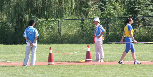 在经过投掷训练场的链球场时,王慧敏书记特别嘱咐负责该区域的志愿者郭艳伟同学注意安全。在经过铁饼的训练场时,中心负责人对学校志愿者的表现进行了高度赞扬。对于志愿者们冒雨为运动员们服务的精神很受感动。职业技术学院会展策划与管理专业的马志璞就表示,志愿服务虽然辛苦,但是有学校领导和老师的关怀,他们很兴奋,同时也非常感谢学校领导对志愿者工作的高度重视以及团委老师对志愿者工作的体贴入微,他们将会克服一切困难,做好奥运志愿服务。