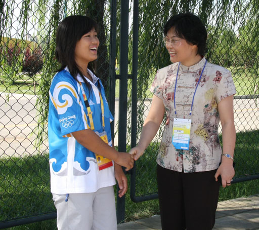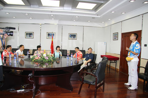 最后,学校领导与朝阳体育中心的总经理孙洪斌及其它中心负责人在该中心的会议室进行了深入交谈。孙经理对学校领导的亲切慰问表示感谢与欢迎。他谈到,在将近一个月的奥运服务中,我校志愿者始终保持团队服务意识、高度的奉献精神及饱满的工作热情,受到了奥组委及各国运动员的一致好评。这与学校的教育与培训是分不开的。王慧敏书记非常感谢朝体中心对学校志愿者的照顾,并表示学校将会站在国家利益的高度积极配合基地的工作。朝体中心志愿者代表,经管系学生会主席、院学生会副主席吕岩对中心工作人员在餐饮等后勤方面的保障非常感激。他表示,他们将以百倍的热情圆满地完成奥运服务的光荣任务,决不辜负学校党委、团委的殷切期望。