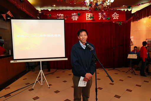 会上,校党委书记王慧敏致新年贺词,校长王有年通报了学校情况。