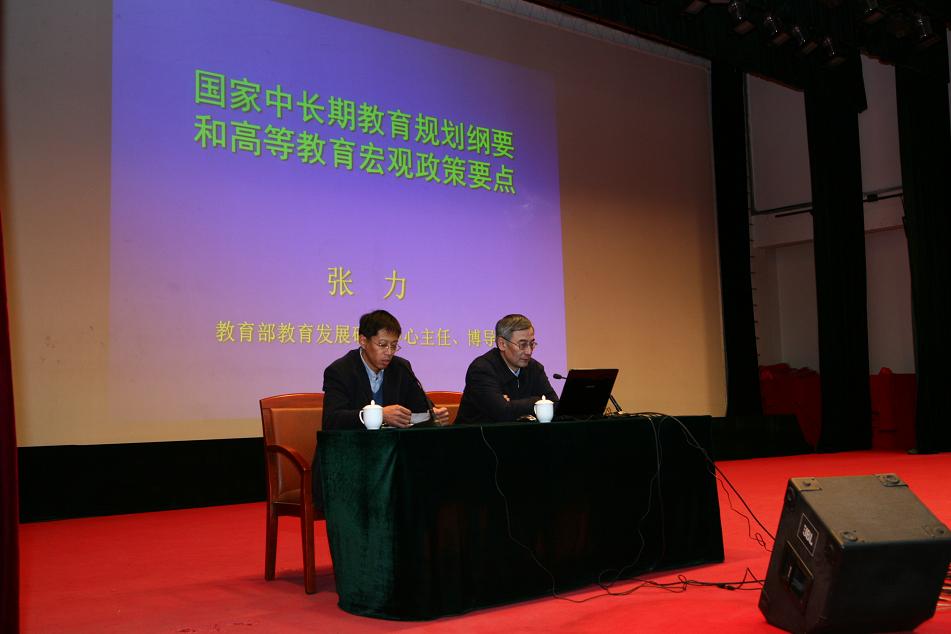 10月26日下午,校组织部特邀教育部教育发展研究中心主任张力教授来校讲解《国家中长期教育改革和发展规划纲要》。校党委副书记高喜军主持报告会。
