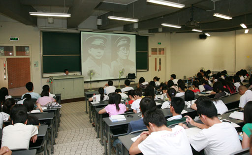 课程中,空军指挥学院李国强大校带领同学们重新回顾了中国现代史,他指出,学习军事,首先要知道“百年耻辱,历史不能忘记”的道理,他激励同学们要树立“勿忘国耻,强我国防”的爱国意识。