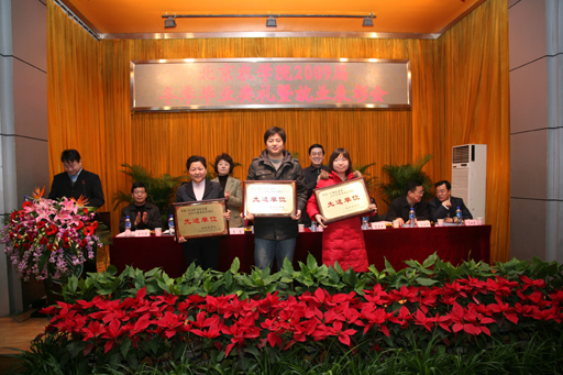 上午,在小报告厅,我校隆重召开2009届毕业典礼暨就业表彰会,党委书记王慧敏、院长王有年、党委副书记高东、高喜军、副院长杜晓林、姚允聪、纪委书记朱生利等校领导出席会议,会议由学生处韩宝平处长主持。