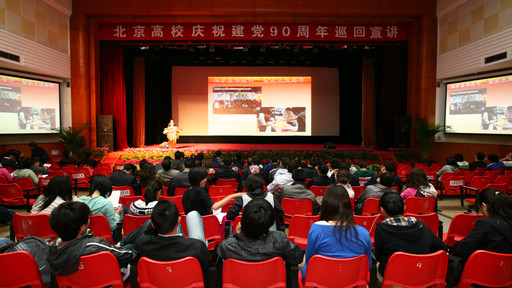 今年中国共产党即将迎来建党90周年。为贯彻落实市委宣传部《北京市庆祝建党90周年百姓宣讲活动实施方案》和市委教育工委《关于在北京高校开展“学习党史,坚定信念”主题教育活动的通知》精神,通过师生宣讲活动,在全市高校掀起学习宣传党的历史、知识和理论高潮,营造昂扬向上、文明和谐、欢乐喜庆气氛,市委教育工委开展了庆祝建党90周年全市高校宣讲比赛,共选出9名优秀宣讲员组成巡回宣讲团,近期赴部分高校进行巡回宣讲。