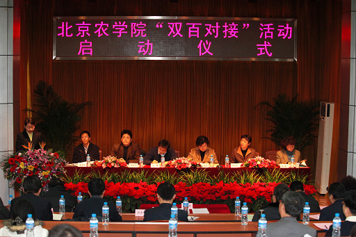 党委书记王慧敏作了动员讲话。她指出,“双百对接”活动是一个新的探索,是促进乡镇经济社会发展,探索城乡统筹党建工作新格局的实现方式。她对如何组织开展好“双百对接”活动提出了三点要求。一是提高认识,精心组织。落实党的十七届四中全会提出“统筹城乡基层党建工作,促进以城带乡、资源共享、优势互补、协调发展”。落实中央、北京市党建工作的新要求,搞好这项活动,对推进北京率先实现城乡经济社会一体化具有重要现实意义。全校各对接党支部要对此项工作给予高度重视,精心组织谋划,协调各方力量,认真组织好“双百对接”活动。二是求真务实,力求实效。希望各对接党支部充分发挥本支部的学科专业优势,进一步整合校内外资源,为创新型乡镇做贡献。并以此为契机,带动教师深入生产一线,了解基层的需求,为教学和科研提供有力支撑,实现新农村建设、教师进步和学生培养共同促进。三是突出特色,创新机制。北京农学院作为市属农林院校,要为北京经济社会发展特别是新农村建设发展发挥科技和智力优势,希望今天的启动仪式是一个良好的开头,并能够形成长效机制。通过支部对接,进一步创新和完善“1+1+X”科技推广服务体系,构建以支部对接为平台的推广服务机制。