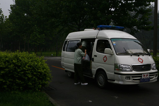 医护保障车随队出发