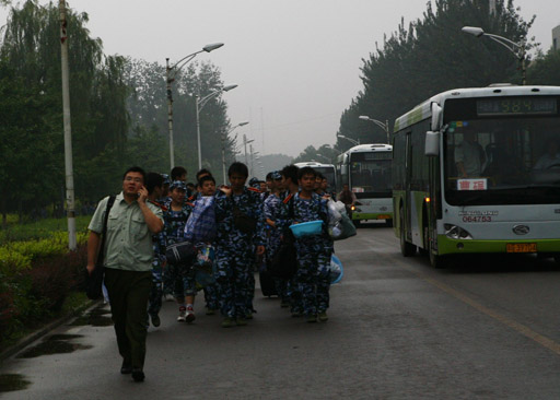 7月5日清晨,窗外雨淅淅沥沥的下着,别有一番江南水乡的韵味,阴霾的天气掩盖不住北京农学院07级全体同学澎湃的心情,因为今天他们即将踏上十天的军训之旅。他们早早拖起沉重的行李,背上重重的行囊,即将离开宿舍之际,学生们互相认真核查军训用品是否齐备,对于学生们来说,军训并不陌生,可谁也没有参加过长达十天的军营封闭式训练,这不仅是一次体质的检验,更是意志力的磨炼。
