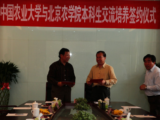 中国农大副校长傅泽田在签字仪式上说,中国农业大学重视与北京农学院的合作,尤其是本科教学方面的合作。与北京农学院共享本科生教育资源,既是对参加交流本科生的激励,也是加强兄弟高校教学工作的交流和联系,同时双方在共建实践教学基地、联合申请北京市教学教改项目、以及服务北京地方经济社会发展等方面有广阔的合作前景。