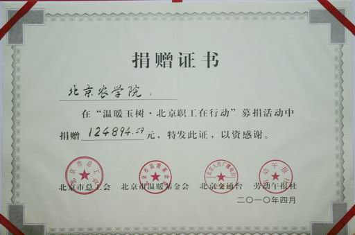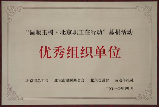 日前,“温暖玉树——北京职工在行动”募捐活动表彰会在北京市总工会举行,我校荣获“优秀组织单位”称号。
