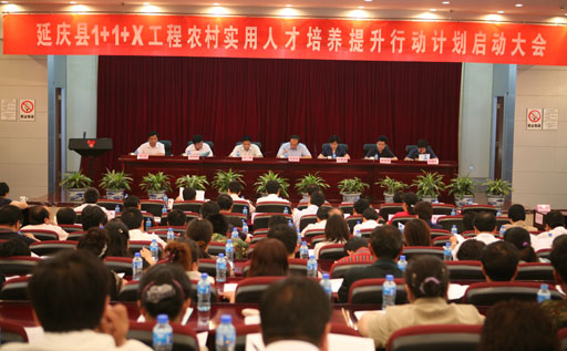 7月3日上午,我校与延庆县联合启动的“1+1+X工程——农村实用人才培养提升行动计划”仪式在延庆举行。市委组织部副巡视员、人才工作处处长张幼林,市委农工委委员、干部处处长张宏图,我校党委书记王慧敏,延庆县委常委、组织部部长孙强,延庆县人民政府副县长徐凤翔,延庆县委组织部副部长张河,延庆县委组织部常务副部长吕桂富出席启动仪式。会议由延庆县政府副县长徐凤翔主持。