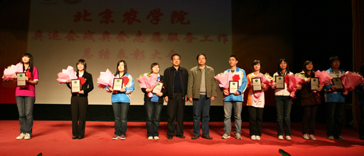 院长王有年宣读了《关于表彰北京农学院奥运会、残奥会志愿者服务工作先进集体、先进个人和优秀志愿者的决定》。授予后勤集团等8个单位“北京农学院奥运志愿服务工作先进集体”荣誉称号;授予韩宝国等49名同志“北京农学院志愿服务工作先进个人”荣誉称号;授予郭丽霞等150名同学“北京农学院奥运志愿服务工作优秀志愿者”荣誉称号。