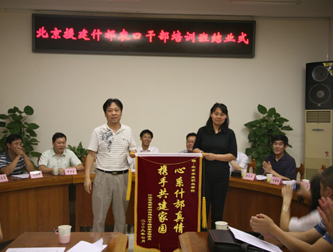 7月17日下午,北京援建什邡干部培训班结业式在北京农学院教学楼B209举行,12名什邡市林业专业技术培训班学员和29名新农村建设干部培训班学员获得了结业证书。结业式由北京市农工委干部处副处长杨琦主持,北京市农工委、四川什邡市农工委、北京市园林绿化局、北京农业职业学院和北京农学院的相关领导出席了结业典礼。