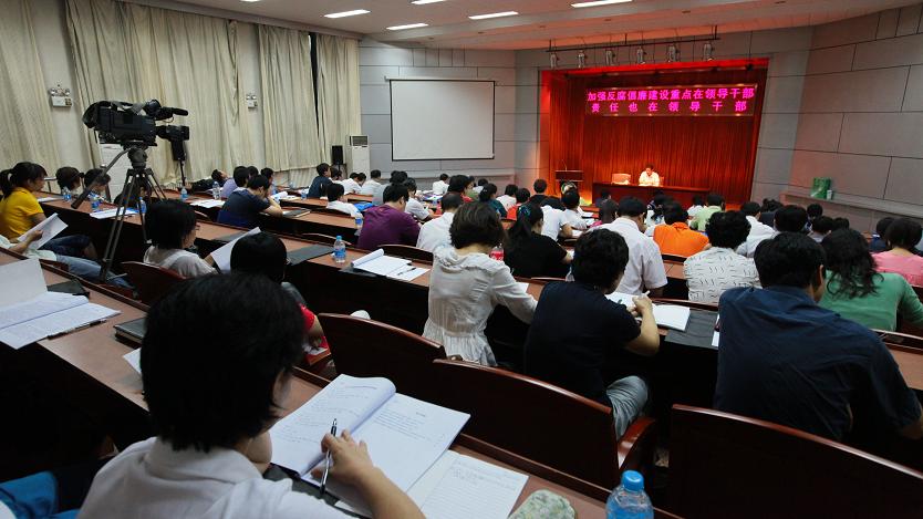 校纪委书记朱生利在开班仪式后,做了题为《加强反腐倡廉建设重点在领导干部,责任也在领导干部》的报告。朱书记讲述了我国反腐倡廉工作的历史进程,分析了建国以来党的反腐倡廉工作在内容、形式、手段等方面的变化,以及新时期反腐倡廉工作的重点和面临的新情况新问题。最后朱书记强调了领导干部在反腐倡廉工作中的地位与作用,并谈到了自己对反腐倡廉工作的体会。