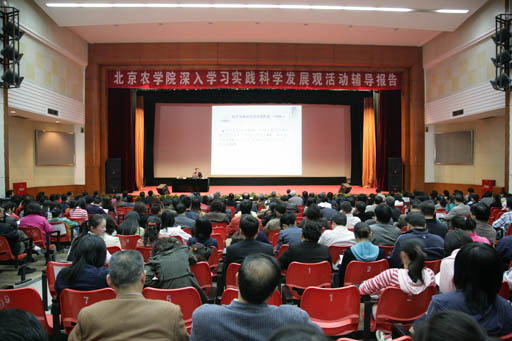 为提高广大党员进一步了解首都高等教育发展总体思路,坚定为首都建设做贡献的决心。4月9日下午,我校在礼堂举办了深入学习实践科学发展观活动第四场辅导报告会。中共北京市委教育工委副书记、市政府教育督导室主任线联平为我校广大党员干部作了题为《坚持科学发展,服务首都建设—关于北京高等教育改革发展的回顾与思考》的专题报告。报告会由党委书记王慧敏主持,学校学习实践领导小组全体成员、全体党员、党外中层干部、党外教授、民主党派负责人等认真聆听了辅导报告。