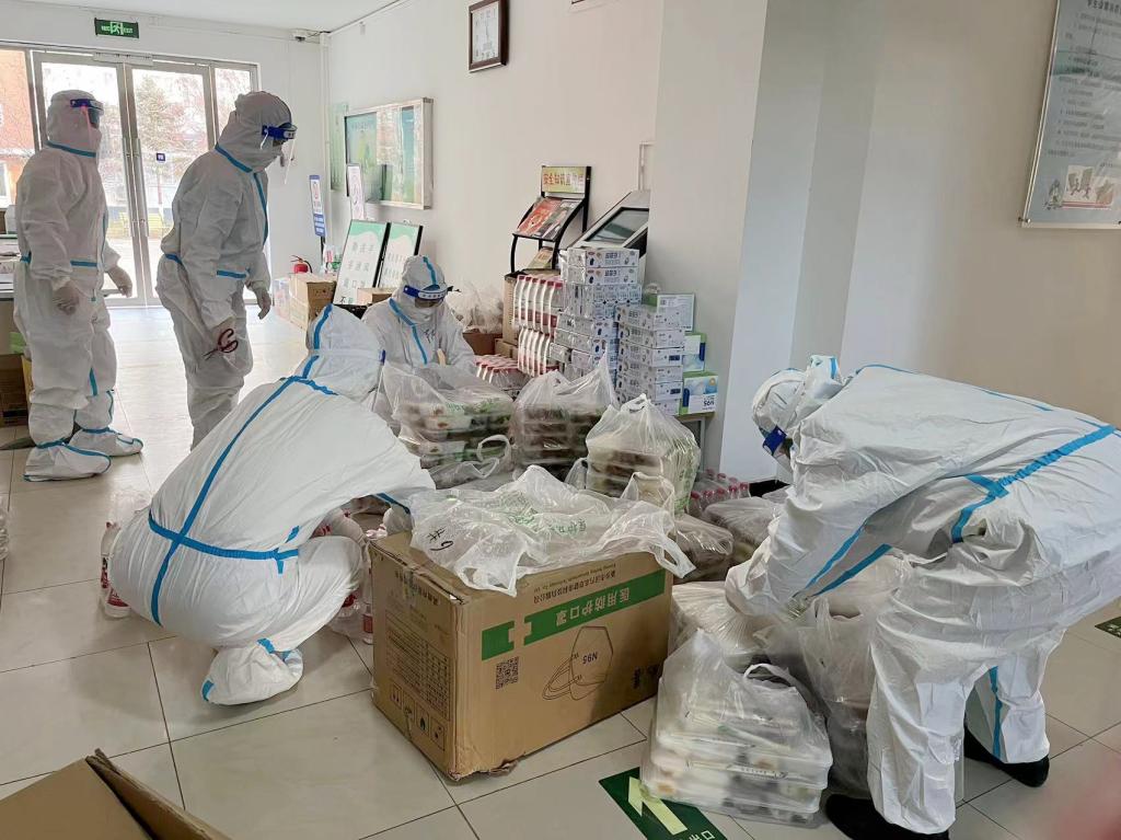 数百份饭菜、物资,她们一趟趟送到学生手中