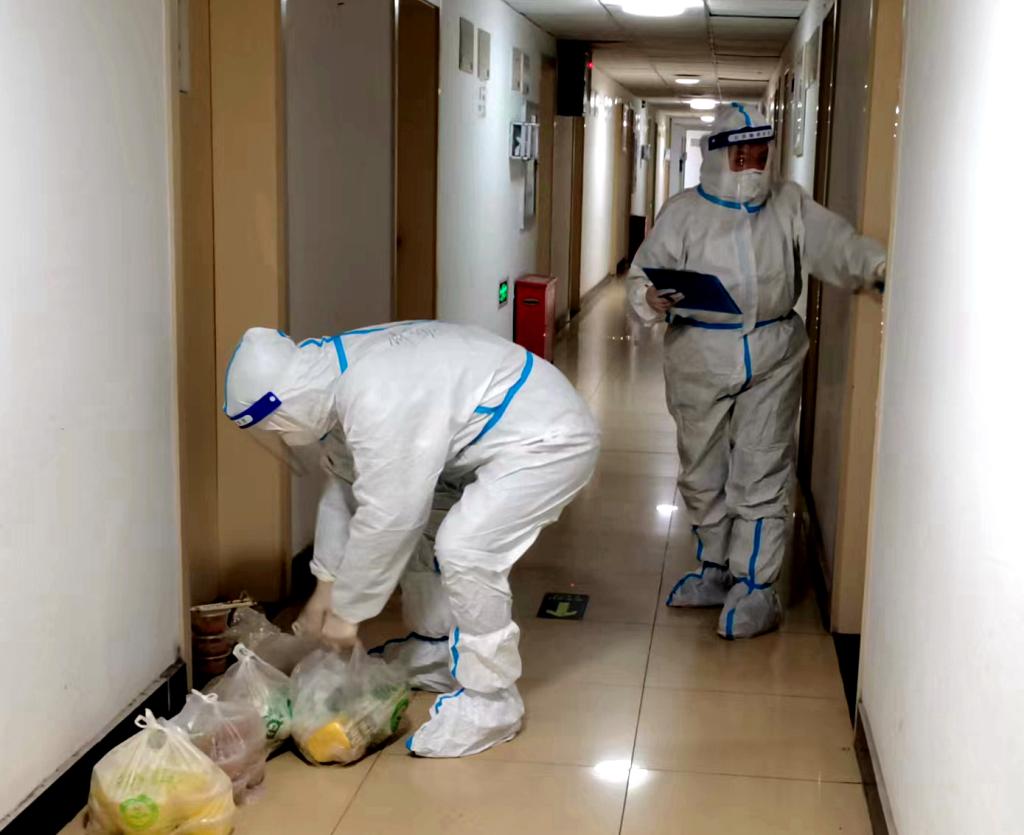 和楼内宿管、保洁等工作人员一道投入“战斗”