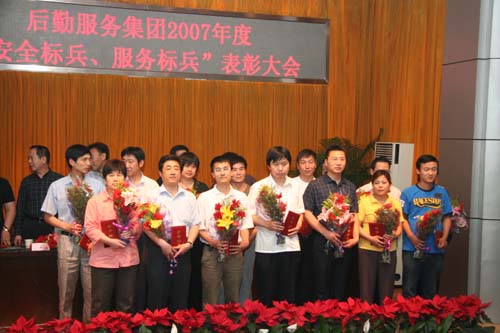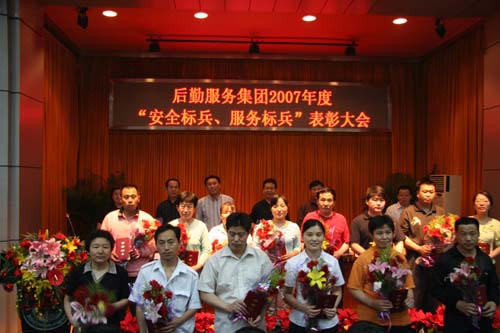 下午,后勤服务集团在图书馆报告厅召开了2007年度“安全标兵、服务标兵”表彰大会表彰2007年度“安全标兵、服务标兵”。副院长姚允聪、总务处处长李晓元出席大会。会议由集团副总经理张秋芝同志主持。后勤服务集团全体职工参加了大会。与会领导为获得“安全标兵、服务标兵”的职工颁布了荣誉证书。