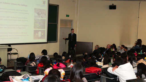 2011年4月13日,英国哈珀•亚当斯大学学院校长大卫•卢埃林(David Llewellyn)博士率代表团对我校进行了工作访问,党委书记王慧敏、校长王有年、副校长杜晓林亲切接见了代表团。
