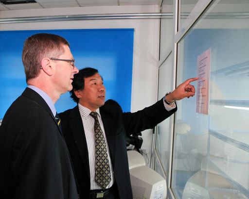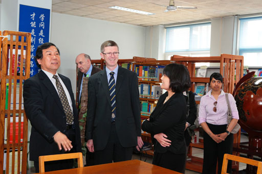 4月13日下午,副校长杜晓林陪同大卫•卢埃林校长和代表团参观了我校新图书馆和大学科技园。