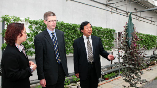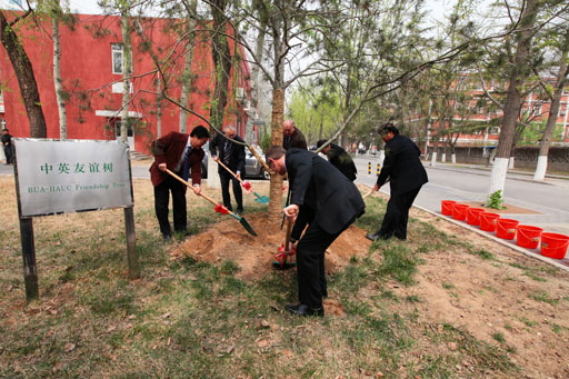 在4月13日上午举行的校长会晤上,校长王有年重点介绍了我校的最新发展状况,尤其是新获批的六个硕士学位授权一级学科以及获得2010年度国家科学技术奖的项目,对两校多年来开展的合作表示高度的肯定。哈珀•亚当斯大学学院校长大卫•卢埃林表示,两校多年来一直保持着良好的合作,这种形式的合作在英国已被视为国际合作成功的典范,相信两校的合作一定会有更长远的发展。大卫•卢埃林校长还介绍了哈珀•亚当斯大学学院近期在教学评估、国际交流、校企合作等方面取得的新成就。随后,双方就两校在研究生领域开展合作进行了商谈。会晤结束后,王有年校长、杜晓林副校长和大卫•卢埃林校长共同为象征两校友好合作关系的中英友谊树浇水,并参观了我校组培中心和图书馆。在学生见面会上,卢埃林校长介绍了哈珀亚当斯大学学院基本情况,鼓励学生努力学习,并与学生们亲切交流。