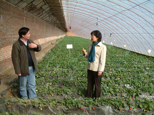 在听完基本情况介绍和实地考察后,王书记指出,兴寿镇作为我校服务京郊新农村建设六大基地之一,学校应给予更多的关心与支持。在麦庄村草莓种植专业村建设中,学校将发挥技术优势和多学科优势,在种植技术、无公害和有机草莓生产等方面下功夫,还将选派植保教师配合工作,加强对病虫害防治技术的指导,提高总体管理水平,进一步增加农民收入。王书记代表学校感谢董清华同志的辛勤工作,并对其在服务京郊新农村建设中取得的成绩表示祝贺。