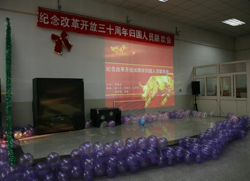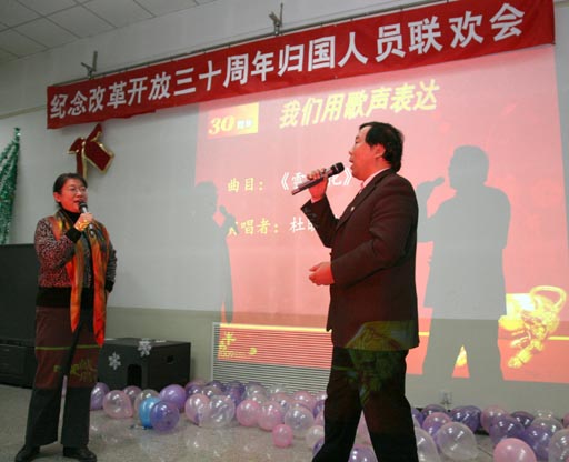 下午,由我校外事办主办,人事处、统战部、工会、宣传部和歌咏协会协办,举行了一场别开生面的“北京农学院庆祝改革开放三十周年归国人员座谈会暨联欢会”。