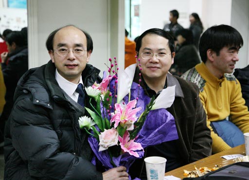 下午三点,“北京农学院庆祝改革开放三十周年归国人员联欢会”的帷幕,在一片欢声笑语和优美音乐的交织声里,欢快地拉开了。党委副书记罗维忠和高喜军也加入到联欢的队伍中。