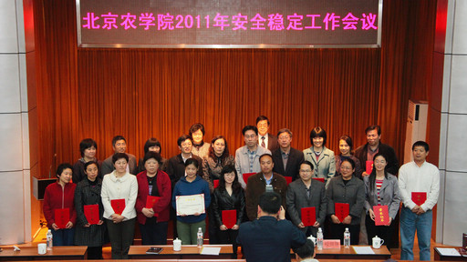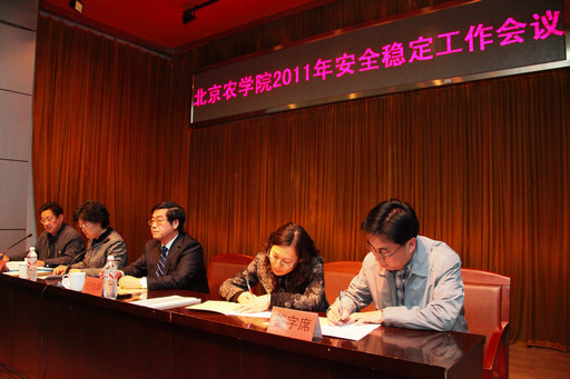 校党委书记王慧敏、校长王有年与处级单位代表签定了《2011年度北京农学院维护安全稳定工作责任书》。