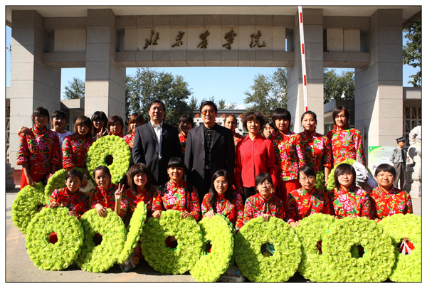 我校参加国庆群众游行方阵师生胜利凯旋 校领导校门口迎接