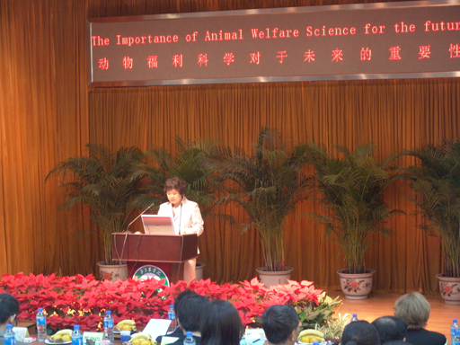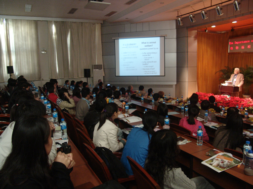 世界农场动物福利协会的前任首席执行官Joyce D Silvan女士主持大会主题报告。来自英国剑桥大学的兽医学教授Donad M Broom首先作报告。这次会议共有12位国内外专家学者做了精彩报告并做了同声翻译。专家、学者分别介绍了欧盟、美国、加拿大等农场动物立法方面的最新进展和未来发展趋势,世界粮农组织、世界动物卫生组织和其他多边团体提出的政策和全球标准,论证了在推行更高福利的系统和良好农业实践过程中,农场动物福利和可持续发展农业之间的关系,动物福利对养殖企业、食品生产商和环境方面的影响以及在全球乃至中国的发展趋势。