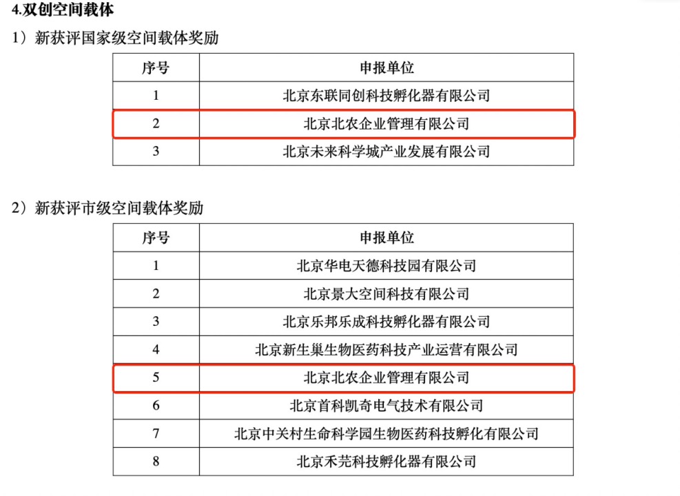 近日,北京市昌平区公布2022年“昌聚工程”人才发展平台拟支持项目名单。本次“昌聚工程”双创空间载体奖励包括新获评国家级空间载体奖励、新获评市级空间载体奖励和项目孵化奖励三项,作为北京农学院国家大学科技园运营主体的北京北农企业管理有限公司均榜上有名。同时,园区企业北京恩泽康泰生物科技有限公司荣获新设立博士后(青年英才)工作站一次性启动奖励,为本次评选唯一一家获得该项奖励的公司。