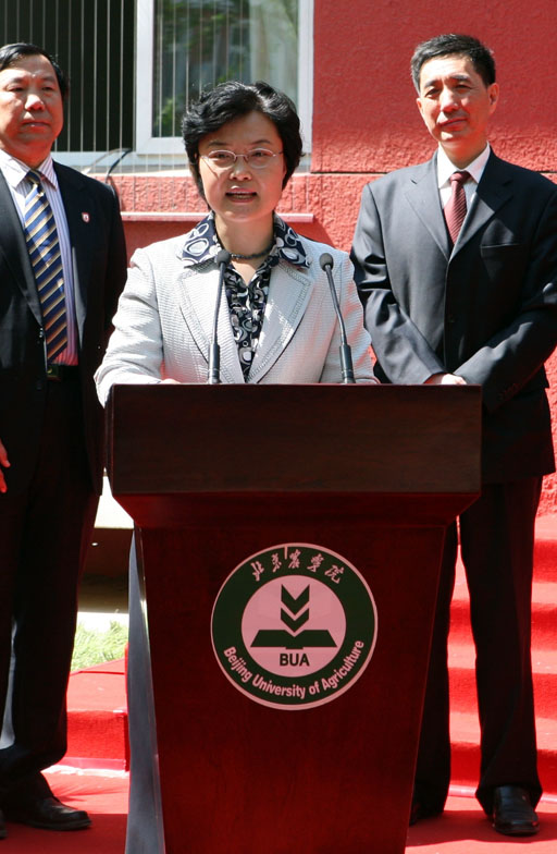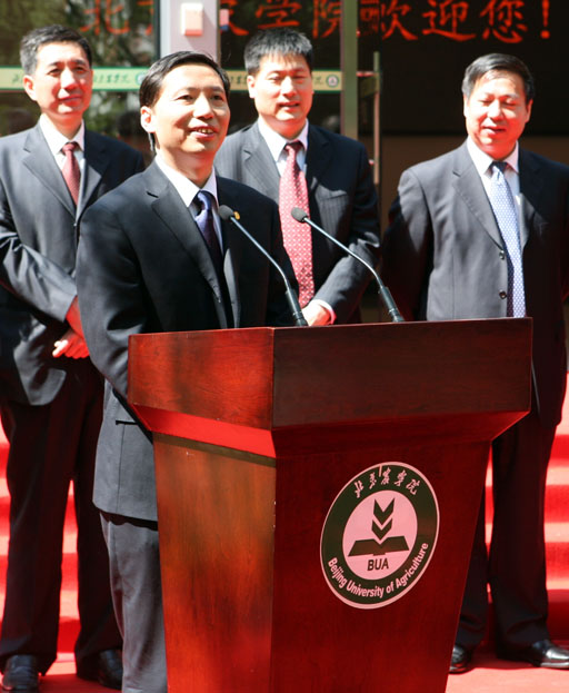 北京市政府副秘书长安钢,北京市农工委书记、农委主任王孝东,北京市教委副主任郭广生,北京市农业局局长赵根武,昌平区副区长方炎及我校全体校领导出席揭牌仪式。北京市政府副秘书长安钢与北京市农工委书记、农委主任王孝东共同为北京都市农业研究院揭牌。
