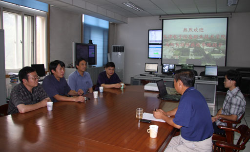 9月7日,天津电子信息职业技术学院副院长高建立、网络中心负责人栾群、二级软件学院院长付联众,二级软件学院主任卢勤一行到我校教育技术中心考察指导。教育技术中心主任高明山与天津电子信息职业技术学院来访成员就校园网建设、数字校园建设、校园一卡通建设、网络资源建设、多媒体教室建设等具体事宜进行了深入细致地交流。