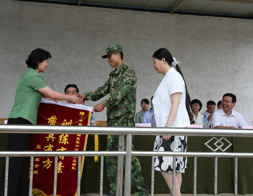 党委书记王慧敏向部队和基地分别赠送锦旗