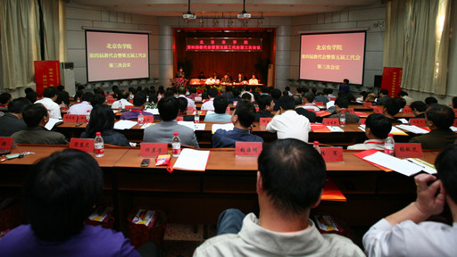 ,我校第四届教代会暨第五届工代会第三次会议在图书馆报告厅隆重召开。校党委书记王慧敏、校长王有年,市委教育工委联络员、原北京航空航天大学党委副书记曾妙南,党委副书记高东、高喜军,副校长杜晓林、郑一淳、姚允聪,纪委书记、工会主席朱生利,校长助理范双喜、弓永华出席了本次大会。校工会常务副主席张永红主持开幕式。