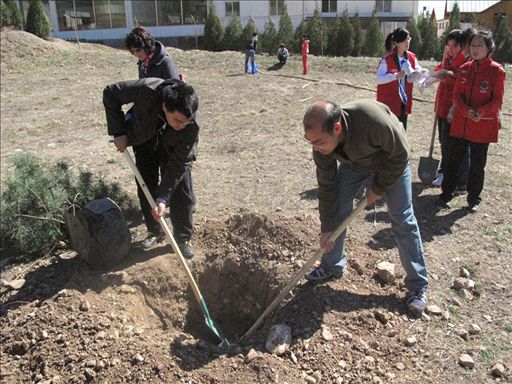 4月10日,在庆祝建党90周年之际,为了响应“做文明有礼北京人”的号召,由我校团委和公交集团第四协作区主办的“传播绿色文明,倡导低碳生活”的主题植树活动在延庆县石京龙滑雪场拉开帷幕。活动由石京龙滑雪娱乐有限公司、迈科期货经贸公司北京营业部、北京阳光企业家协会协办。