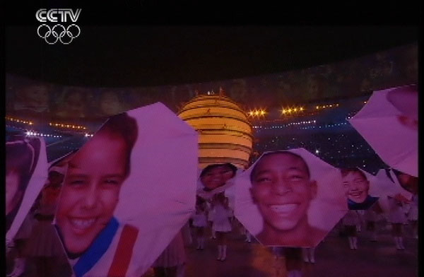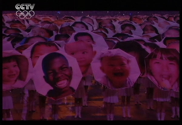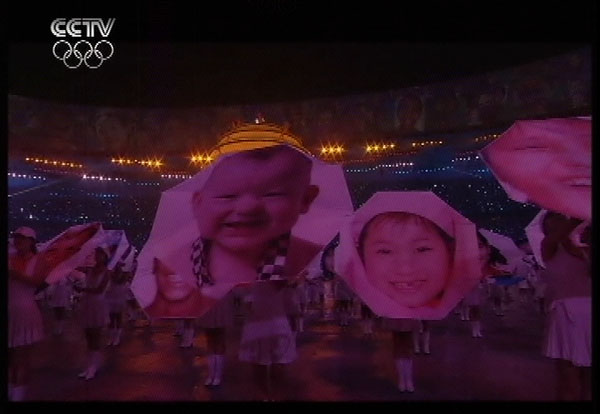 8月8日晚,在开幕式上刘欢与莎拉-布莱曼共同唱响奥运主题歌《我和你》的时候,同时来自五大洲四大洋的2008张孩子的“笑脸”绽放,我校96名开幕式表演标兵志愿者参与其中。